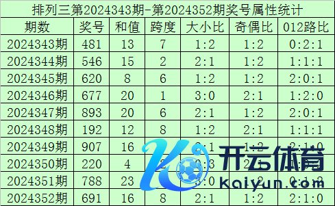 上期回来:成列三第2024352期开奖号:691世界杯足球体育信息,奖号和值:16,奇偶比1:2,大小比2:1。