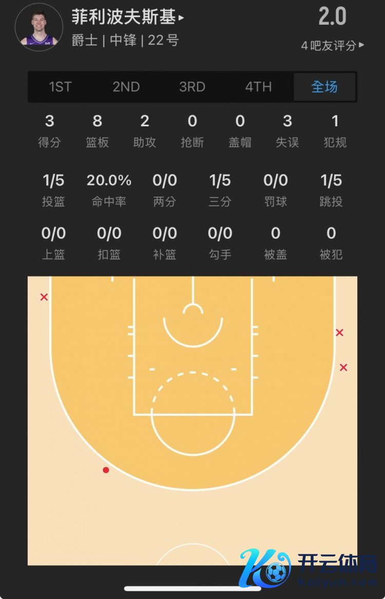 爵士32号秀 凯尔-菲利波夫斯基 登场17.2分钟