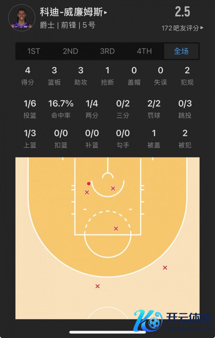 爵士10号秀 科迪-威廉姆斯 登场29.4分钟