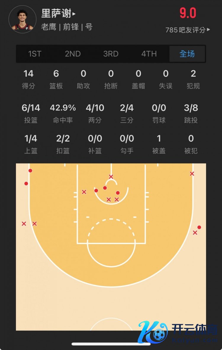 老鹰状元秀 扎卡里-里萨谢 登场23.9分钟