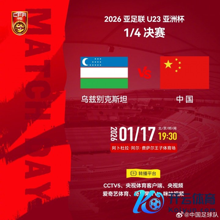 01月17日讯 北京技艺今晚19:30,U23亚洲杯1/4决赛,中国男足U23将对阵乌兹别克斯坦U23。