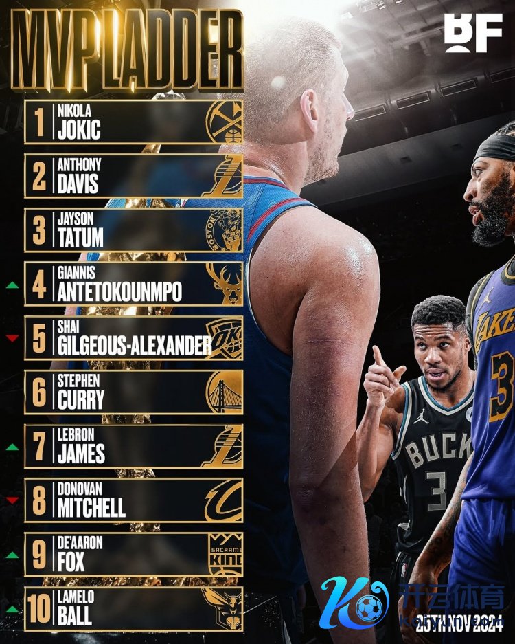 BF更新MVP榜:约眉塔前三不变 字母冲至第四 库詹分列六七体育集锦