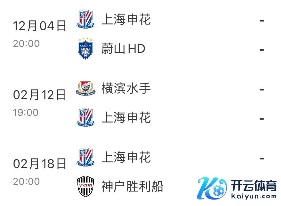 11月27日讯 中超三队界限了亚冠精英联赛前5轮的比赛,申花、泰山以及海港均2胜1平2负积7分体育集锦,暂技艺列东亚区第6、7、8位,三支球队联赛阶段终末三轮的赛程对比如下。