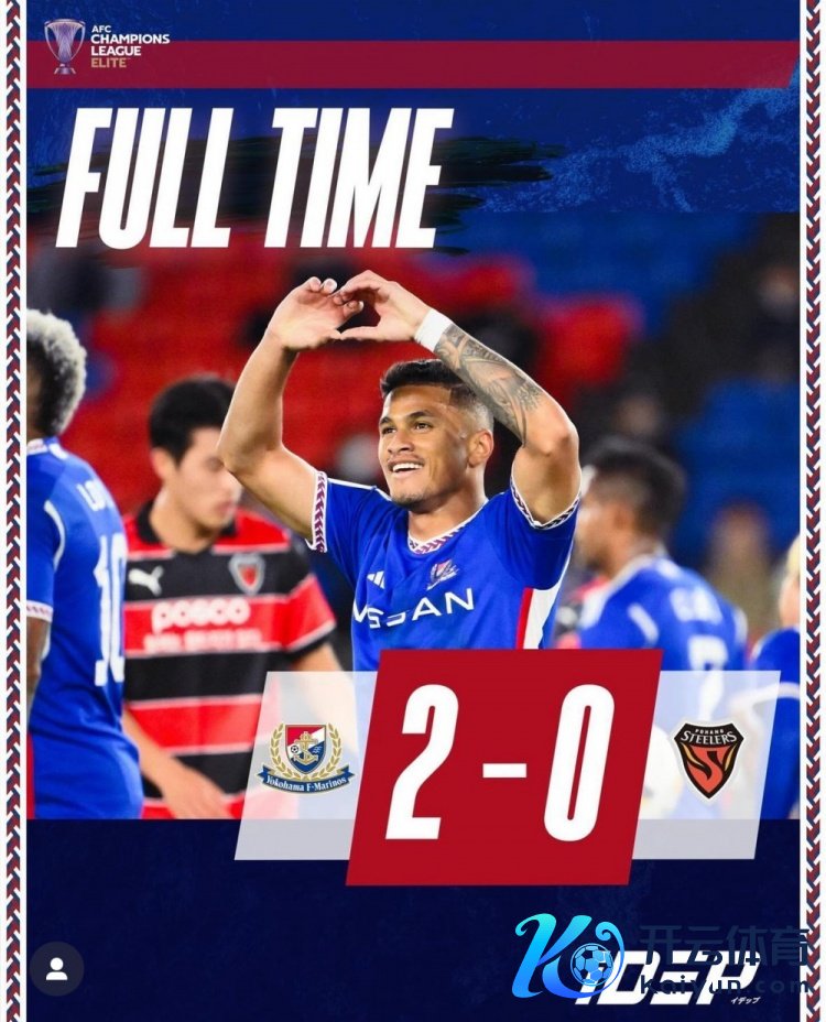 11月27日讯 亚冠精英联赛第5轮比赛,扬-马特乌斯、安德森-洛佩斯各入一球,最终横滨水手主场2-0打败浦项制铁。
