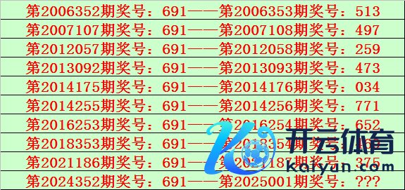陈设三第2024352期开出奖号691,该号码直选类型历史上出现了10次,前9次开出之后期下期奖号为:513、497、259、473、034、771、652、469、375,见下表:
