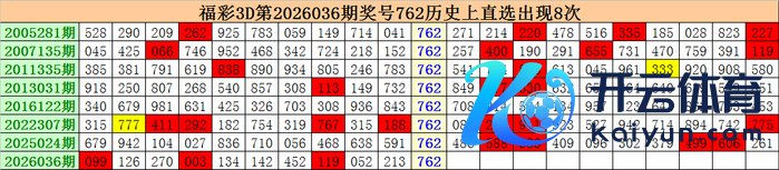上期归来:福彩3D第2026036期开出奖号762体育录像/图片。