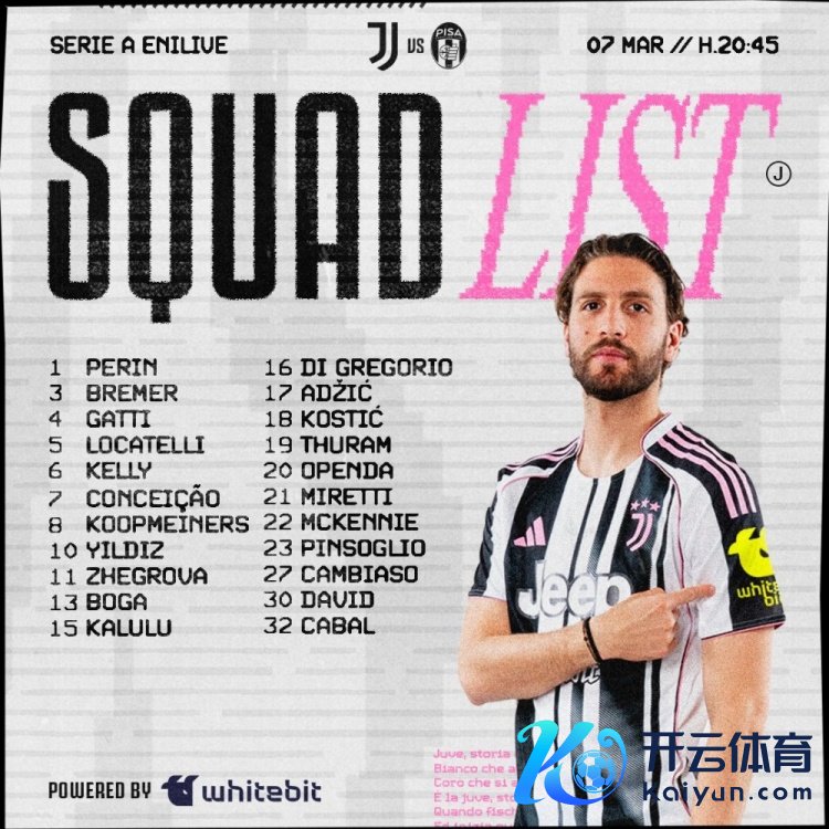 3月7日讯 北京时分3月8日凌晨3:45,2025-26赛季意甲联赛第28轮,尤文图斯主场迎战比萨。赛前,尤文臣方公布本场比赛球队大名单,伊尔迪兹领衔垂危线,弗拉霍维奇缺席。