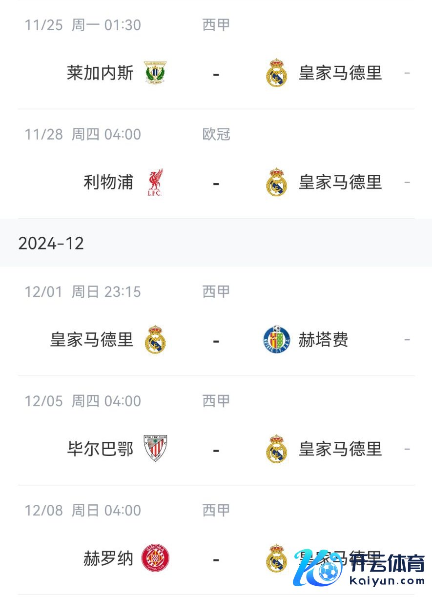 皇马改日赛程↓
