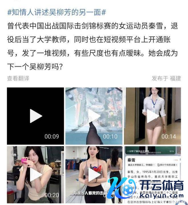 2026-04-0511月29日体育录像/图片,账号“鳕儿不吃大米”激励关爱,账号发布多条穿戴寒冷展现形体的视频,其账号握有者恰是前中国击剑透露员秦雪,主页认证为国外级击剑透露健将。 而已深切,秦雪2008年加入山东省击剑队,2014年在亚洲击剑锦标赛上赢得女子重剑个东谈主赛季军,并随中国队赢得亚洲击剑锦标赛女子重剑团体赛冠军。现在该账号粉丝数目超137万,细则页面深切,账号签约机构为“无忧传媒”。如今秦雪是又名大学体育针织,仳离后独自服待男儿。 此前,前中国女子体操队队员吴柳芳因发布多条性感热舞视频,被另一位前