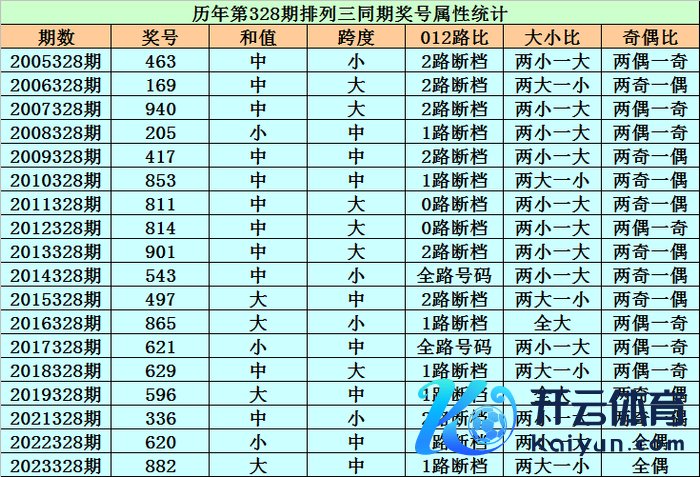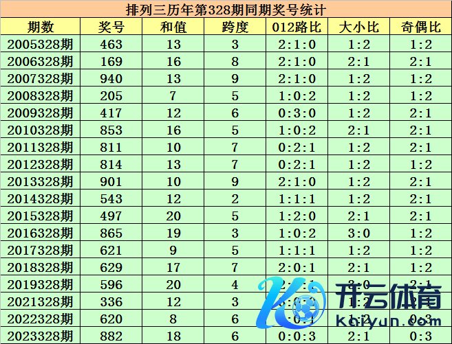 历史上第2024328期成列三已开出18期奖号了,积年同时奖号分辩为:463、169、940、205、417、853、811、814、901、543、497、865、621、629、596、336、620、882,详备统计见下表: