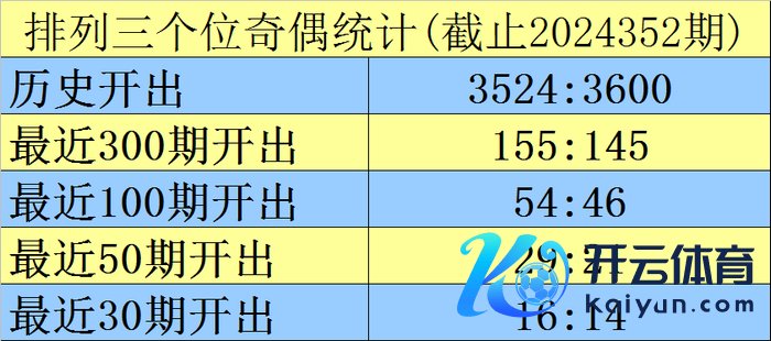 上期追思:陈设三2024352期奖号为691,类型为组六,奇偶比为2:1体育录像/图片,大小比为2:1,和值为16。