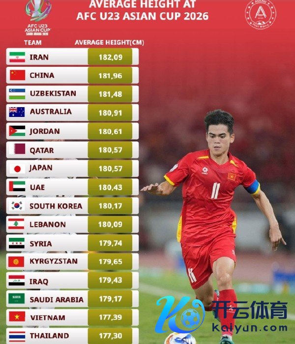 从统计数据看,本届U23亚洲杯上,咱们的球员平均身高达到181.96公分,接近1米82,在悉数球队里名按次二,仅次于伊朗队。