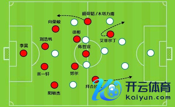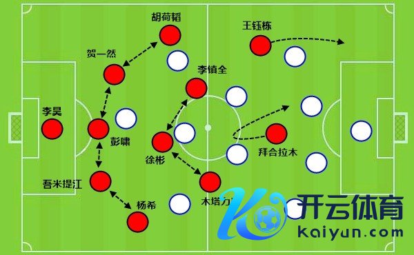 就像是这一次,中卫吾米提江拿球的同期,后腰徐彬去到右边路,正本右边翼卫的杨希前插到很靠前的位置。