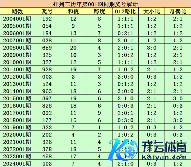 历史上第2025001期陈设三已开出21期奖号了,积年同时奖号分歧为:192、054、184、038、659、325、327、928、003、524、963、397、828、092、177、322、202、326、378、458、403,注视统计见下表: