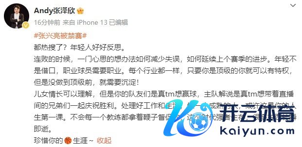 随后,记者、篮球讲解注解员张泽欣发文写说念:“张兴亮被禁赛,齐热搜了?连败的技能,一门心想地想观点奈何减少无理,奈何络续上个赛季的启航点。年青不是借口,管事球员需要管事。每个行业齐不异,独一你是顶级的你就不错有特权,然而没作念到顶级前,就需要千里淀!